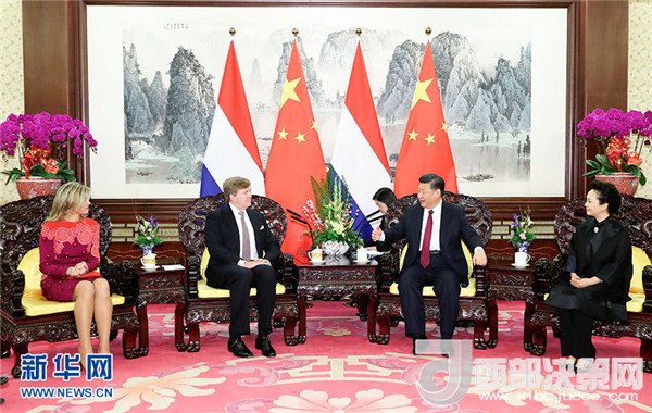 習近平說,威廉——亞歷山大國王和王后在中國傳統(tǒng)新春佳節(jié)到來之際訪華,我們感到格外高興。2014年我對荷蘭進行國事訪問,同你共同確定了中荷開放務實的全面合作伙伴關系新定位,為兩國合作制定了發(fā)展目標和規(guī)劃。在雙方共同努力下,我們達成的共識和互訪成果得到落實,兩國關系進入了歷史最好時期,雙方相互尊重彼此核心利益和重大關切,政治互信不斷深化,貿易、投資、創(chuàng)新、人文等各領域交往合作成果豐碩。中荷關系正站在新起點上,面臨新的發(fā)展機遇,相信在新的一年里,兩國將通過共建“一帶一路”開展更多的互利合作。