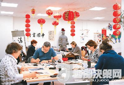 在比利時布魯塞爾的孔子學院,學員們練習中國書法。新華社記者葉平凡攝