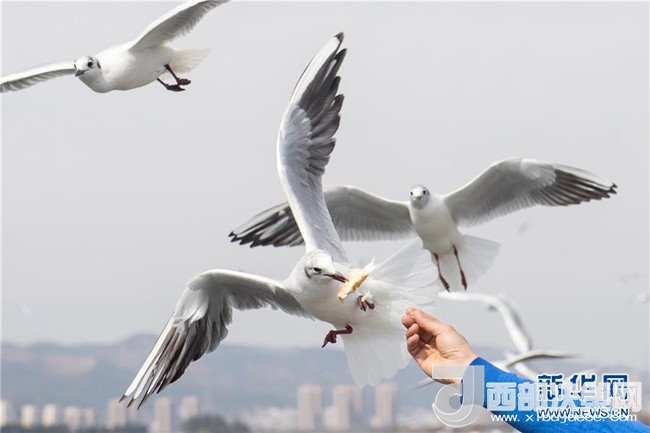 當(dāng)日,云南省昆明市陽光明媚,眾多市民和游客來滇池海埂觀景大道觀賞、投喂紅嘴鷗。每年秋冬季大批紅嘴鷗飛臨昆明越冬。人鷗同樂成為昆明的一道風(fēng)景線。記者胡超攝