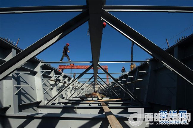 正在生產(chǎn)中的重達1900噸的港珠澳大橋巨型組合梁(2013年11月30日攝)。記者 程敏 攝