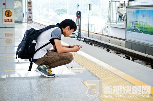 資料圖片:2012年7月18日,在北京地鐵立水橋站,一名年輕人在候車期間查看手機。新華社發(fā)