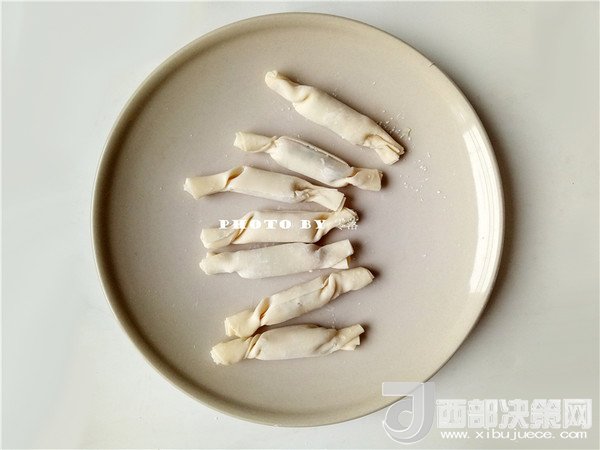 5.如圖所示,抄手皮卷起來,封口處可用適量清水或蛋清涂抹,便于粘連;