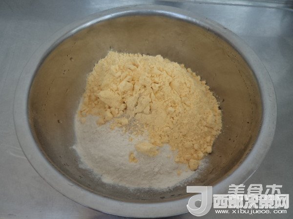 2.玉米面加小麥粉,再加少許酵母粉加水和成面團醒發(fā)。半發(fā)即可