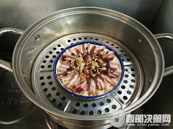 9.放入蒸鍋,上汽后蒸30分鐘左右(咸肉蒸熟)