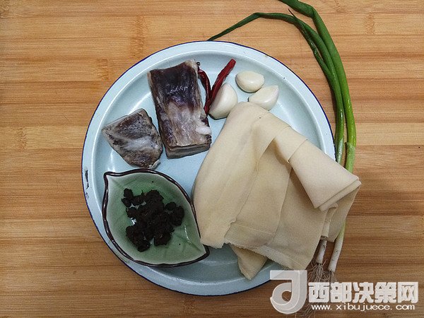 1.食材:千張、咸肉、豆豉、干辣椒、小蔥、大蒜