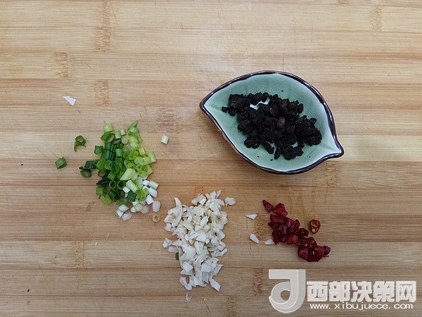 輔料:豆豉 1茶匙   大蒜 3瓣   生抽 1茶匙   小蔥 2棵   姜絲 5克   干辣椒 2個