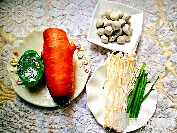 主料:胡蘿卜 半個(gè) 金針菇 60克 肉丸 50克 蔥 少許