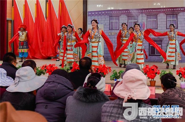 拉薩市城關區(qū)納金鄉(xiāng)塔瑪村村民在觀看百萬農(nóng)奴解放紀念日文藝表演(3月27日攝)。
