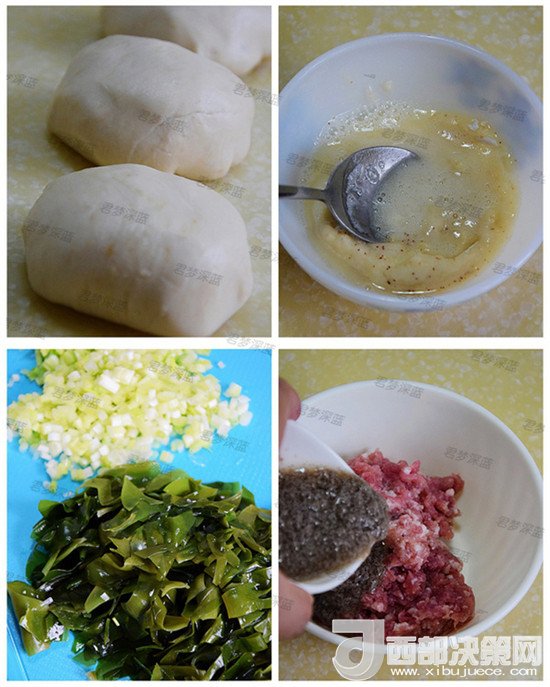 這款餅純屬亂搭型的,原來只是想自己練練手藝做個爬蝦醬味道的肉末餅,打開冰箱的時候發(fā)現(xiàn)有之前剩的新鮮裙帶菜,于是靈機(jī)一想,把裙帶菜也加入餅中,這樣讓這款餅更健康。