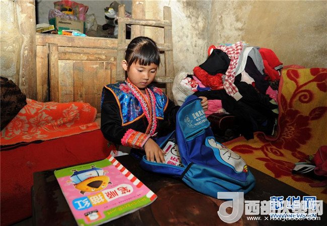 在今年的易地扶貧搬遷中,家住貴州省安順市西秀區(qū)巖臘鄉(xiāng)龍?zhí)洞甯裆趁缯?歲女孩吉雪,與家人一起從缺水、耕地少、海拔高的格沙苗寨搬遷至50公里外的西秀區(qū)工業(yè)園區(qū)易地扶貧搬遷安置點——彩虹社區(qū)。從4月21日夜開始,吉雪便開始忙著收拾自己的書包,準備隨同爺爺、奶奶、妹妹一起離開深山苗寨。
