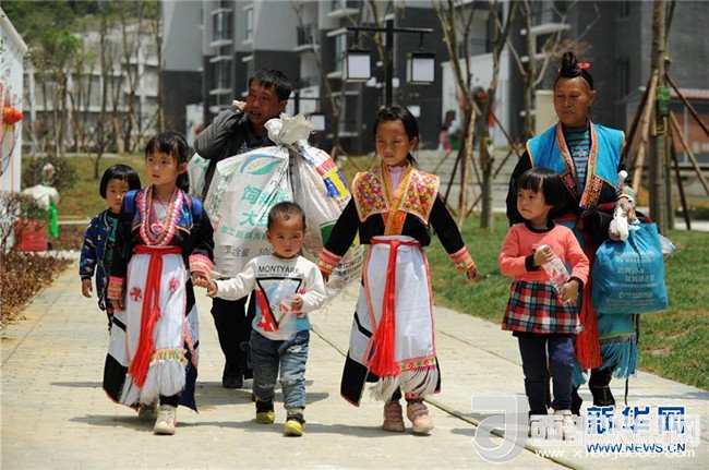 4月22日,在當?shù)剜l(xiāng)鎮(zhèn)干部的幫助下,吉雪一家來到了城里的新家,開啟了她從山里到山外的生活。彩虹社區(qū)是安順市西秀區(qū)規(guī)模最大的易地扶貧搬遷城鎮(zhèn)集中安置點。