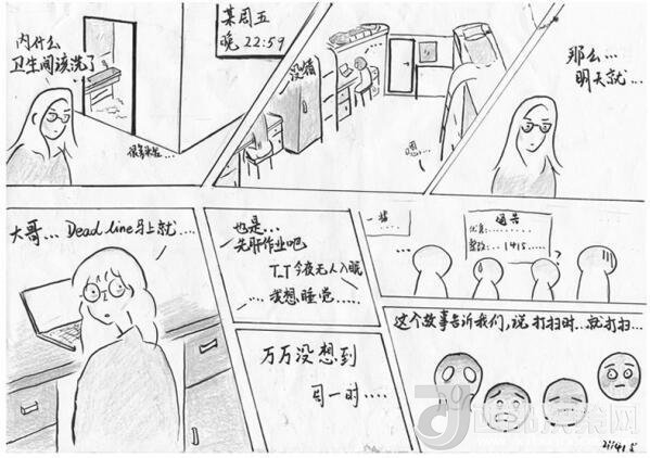 李雍告訴記者,家居與工業(yè)設(shè)計學(xué)院的學(xué)生都有一定美術(shù)功底,畫檢討剛好能讓學(xué)生在反省的同時鍛煉自己的專業(yè)技能,加上漫畫的表現(xiàn)形式輕松活潑,更符合“95后”的表達風(fēng)格。“學(xué)生們的漫畫體檢討融合了他們的創(chuàng)作情感,文字無法完整表達的心理活動,都可以通過這種圖文并茂的形式生動地呈現(xiàn)出來,而他們會把這種情感潛移默化嫁接到檢討的屬性里去,從而提升檢討教育的實效性。”