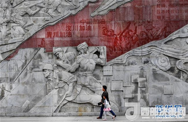 4月26日,市民從感恩奮進(jìn)墻前走過(guò)。感恩奮進(jìn)墻是花崗巖浮雕墻,長(zhǎng)230米,高12米,再現(xiàn)了青川的風(fēng)土人情、歷史文化和眾志成城、自強(qiáng)不息的抗震救災(zāi)精神、地震災(zāi)后重建和生態(tài)青川的壯美畫(huà)卷。新華社記者陶明攝