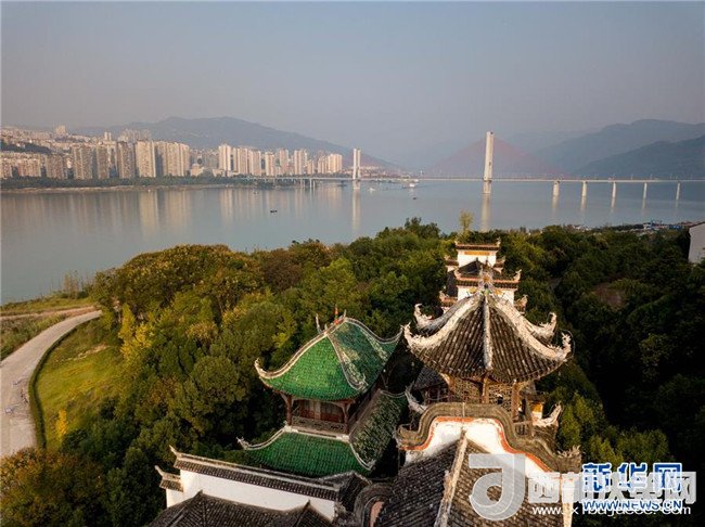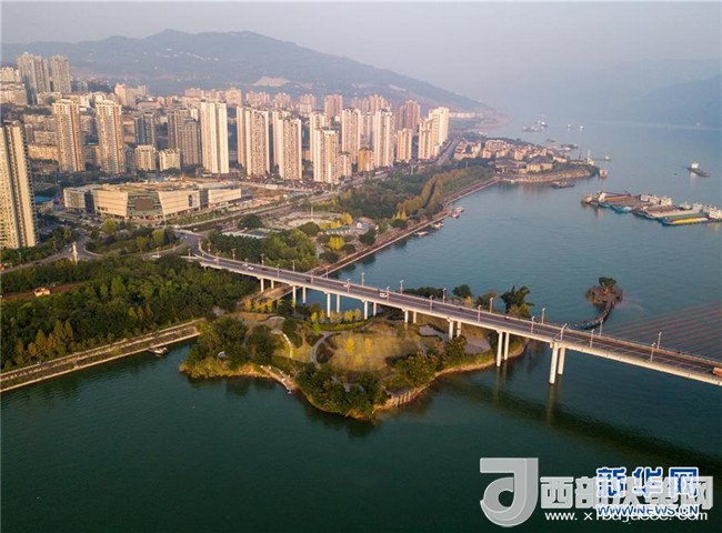 2017年11月7日無人機航拍的重慶云陽縣濱江公園。