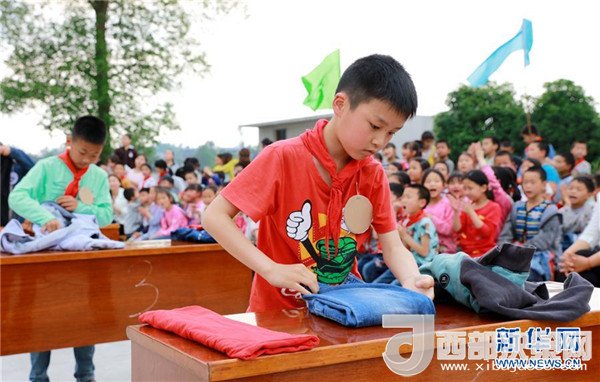 當日,九年一貫制的四川省華鎣市慶合初級中學舉行學生生活自理能力大賽。在該校就讀的小學生和初一、初二年級學生參加了穿衣服、洗漱、疊衣服、炒菜、包餃子等項目的比賽。該校把提高學生生活自理能力作為一項重要的教學工作,旨在引導孩子們養(yǎng)成良好的生活習慣。新華社發(fā)(周松林 攝)