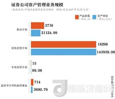 基金業(yè)協(xié)會(huì)數(shù)據(jù)顯示,截至2017年末,證券公司資產(chǎn)管理業(yè)務(wù)規(guī)模16.88萬(wàn)億元,相比2017年一季度末18.77萬(wàn)億元(最高值)減少1.89萬(wàn)億元。其中定向資管計(jì)劃產(chǎn)品規(guī)模為14.39萬(wàn)億元,相比2017年一季度末16.06萬(wàn)億元下滑1.67萬(wàn)億元。也就是說(shuō)在券商資管規(guī)??s減的1.89萬(wàn)億中,8成左右是通道業(yè)務(wù)。