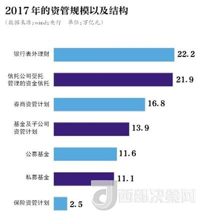 央行數(shù)據(jù)顯示,近年來(lái),我國(guó)金融機(jī)構(gòu)資管業(yè)務(wù)規(guī)模不斷攀升,截至2017年末,不考慮交叉持有因素,總規(guī)模已達(dá)百萬(wàn)億元。其中,銀行表外理財(cái)產(chǎn)品資金余額為22.2萬(wàn)億元,信托公司受托管理的資金信托余額為21.9萬(wàn)億元。同時(shí),互聯(lián)網(wǎng)企業(yè)、各類投資顧問公司等非金融機(jī)構(gòu)開展資管業(yè)務(wù)也十分活躍。