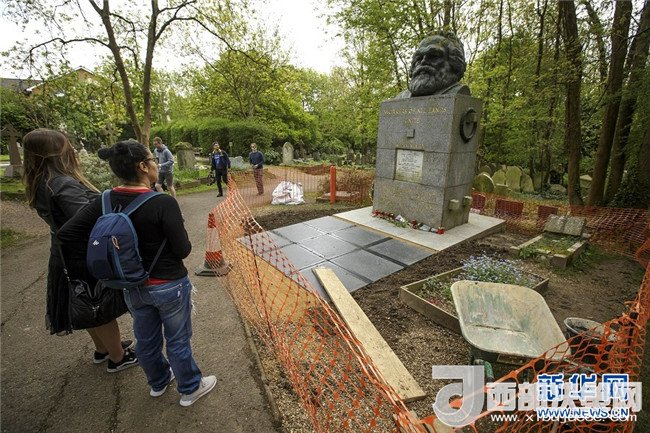 歷史長河奔流不息,真理之光穿越時空。1818年5月5日,德國小城特里爾,一代偉人馬克思誕生。200年后,世界東方。高擎馬克思主義的精神火炬,在習近平新時代中國特色社會主義思想指引下,中國共產(chǎn)黨正領導億萬人民書寫人類發(fā)展史上新的奇跡。這是2018年5月3日,在英國倫敦北部海格特公墓,人們來到正在進行維修的馬克思墓前參觀。新華社發(fā)(蒂姆·愛爾蘭攝)
