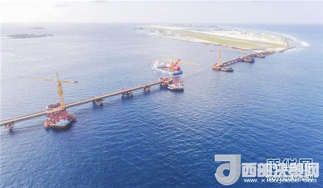 這是2017年7月6日俯拍的馬爾代夫中馬友誼大橋建設(shè)現(xiàn)場。中馬友誼大橋于2016年初正式動工,是中馬共建“一帶一路”的重要合作項目。作為馬爾代夫有史以來第一座大橋,同時也是印度洋上第一座跨海大橋,中馬友誼大橋連通馬爾代夫首都馬累和機(jī)場島,由橋梁、填海路堤及道路等組成,使用壽命100年。新華社發(fā)