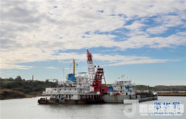 這是2017年10月12日,一組由駁船、運泥船和抓斗式疏浚船組成的清淤單元在烏克蘭敖德薩州南方港施工。由中國港灣工程有限責(zé)任公司承攬,中國交建天津航道局有限公司承建的烏克蘭南方港糧食碼頭疏浚工程2018年1月30日舉行竣工簽字儀式。南方港疏浚項目解決了該港口被淤泥阻塞多年的困擾,對烏克蘭進(jìn)一步擴(kuò)大糧食出口具有戰(zhàn)略意義。新華社記者陳俊鋒 攝