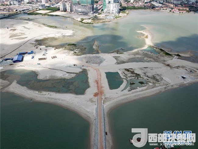 這是2018年2月1日在馬來西亞馬六甲航拍的馬來西亞皇京港填海造地施工現(xiàn)場。按照規(guī)劃,皇京港是一個集生態(tài)旅游、商業(yè)貿(mào)易、地產(chǎn)開發(fā)、深水碼頭和臨海工業(yè)園建設(shè)為一體的綜合性項目,中國電建負(fù)責(zé)吹砂回填、護(hù)岸及防波堤修建等工作。新華社記者劉彤 攝