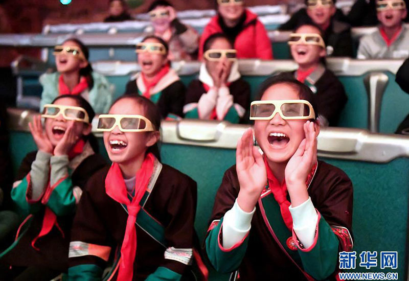 在廣西柳州市景行小學柳東校區(qū),來自三江侗族自治縣和融安縣大山里的留守兒童觀看3D動畫片(1月4日攝)。當日,柳州市舉行關愛留守兒童城市圓夢活動。新華社發(fā)(黎寒池 攝)