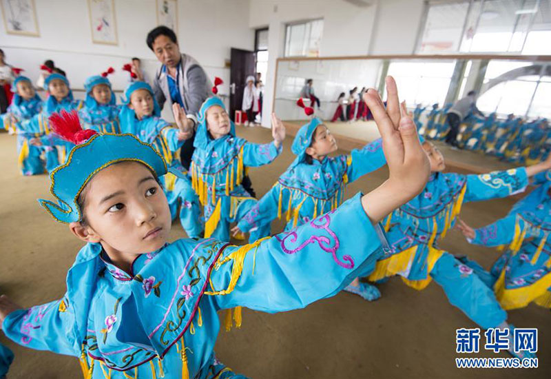 江蘇省南通市海安縣西場小學學生在練習京?。?月26日攝)。新華社發(fā)(徐勁柏 攝)