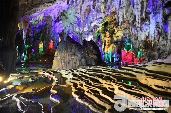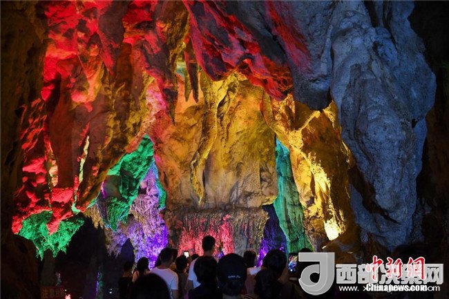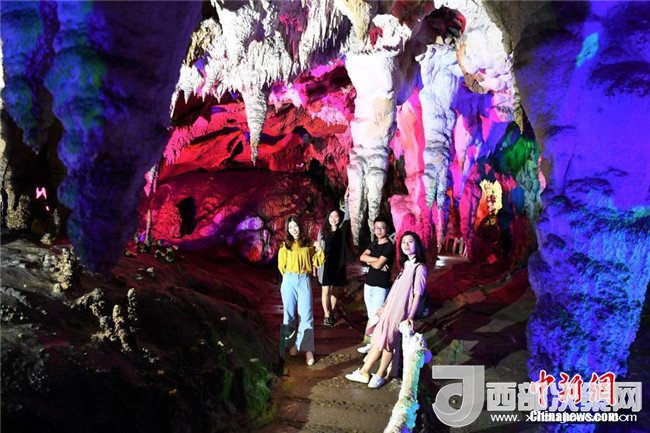 6月3日,記者走進廣西百色市德??h國家4A級景區(qū)吉星巖探訪,巖洞內(nèi)大小鐘乳石鱗次櫛比,令人嘆奇。 中新社記者 陳文 攝