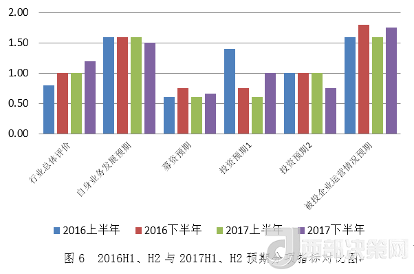 從指數(shù)分項指標(biāo)看,2017年下半年募資指標(biāo)為119.51,環(huán)比下降0.15%;投資指標(biāo)為119.02,環(huán)比下降1.12%;退出指標(biāo)為128.93,環(huán)比下降1.13%;信心指標(biāo)為119.83,環(huán)比上升6.99%。