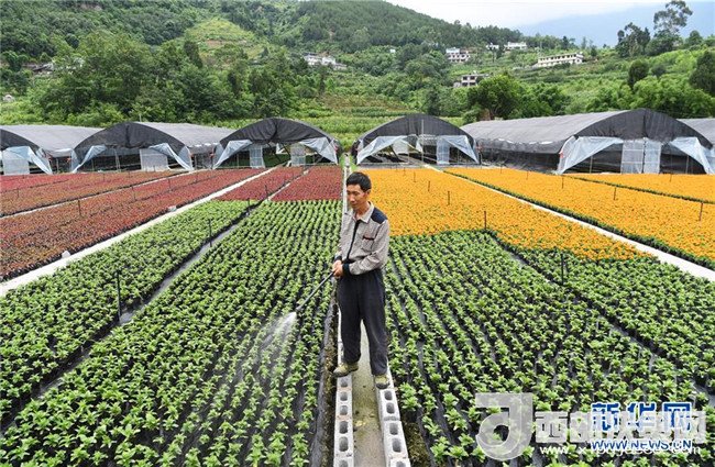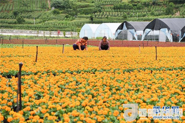 6月12日,艷山紅村村民在村里的花卉基地勞作。近年來(lái),重慶市武隆區(qū)羊角鎮(zhèn)艷山紅村探索“公司+村集體+農(nóng)戶+基地”的經(jīng)營(yíng)模式,發(fā)展花卉種植等產(chǎn)業(yè),實(shí)現(xiàn)了“農(nóng)村資源變資產(chǎn)、資金變股金、農(nóng)民變股東”,幫助當(dāng)?shù)剞r(nóng)民通過保底分紅、效益分紅、務(wù)工收益等方式脫貧增收。新華社記者王全超攝