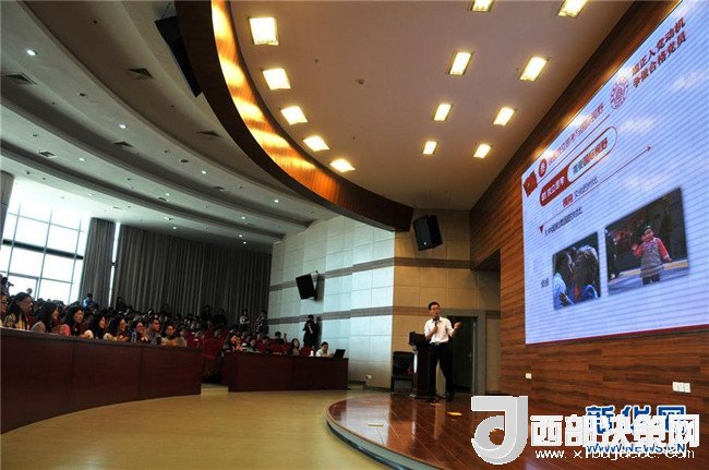 2016年5月16日,徐川在南京航空航天大學(xué)報(bào)告廳給同學(xué)們上《端正入黨動(dòng)機(jī) 爭做合格黨員》黨課。新華社記者 林凱 攝
