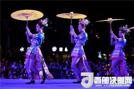 7月2日晚,在貴州省黔東南苗族侗族自治州丹寨縣,一場以苗族婚禮、苗族服飾為主的服飾秀在萬達小鎮(zhèn)舉行。中國以及來自喀麥隆、巴西、墨西哥、荷蘭等國的模特,集中展示民族服飾元素設(shè)計作品。新華社發(fā)(楊文斌 攝)