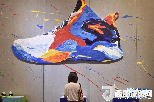 在一年一度的中國(晉江)國際鞋業(yè)暨國際體育產(chǎn)業(yè)博覽會(huì)上,一位客商在了解安踏運(yùn)動(dòng)鞋(2017年4月18日攝)。新華社記者 宋為偉 攝