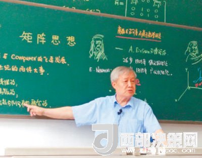 這位74歲的老教授是西安電子科技大學(xué)原校長(zhǎng)、首屆國家教學(xué)名師獎(jiǎng)獲得者。從教幾十年,他一直堅(jiān)持手寫板書,教學(xué)嚴(yán)謹(jǐn)又生動(dòng)。“畫畫是我小時(shí)候的愛好,為了吸引學(xué)生的注意力,讓他們生動(dòng)地記住教學(xué)內(nèi)容,就放到了板書里。”