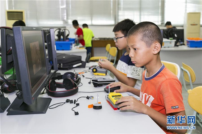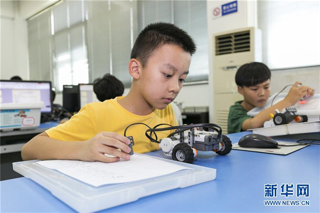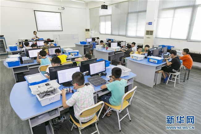 暑假期間,福建省晉江市舉辦青少年科普公益課堂,增強(qiáng)青少年的創(chuàng)新意識(shí),豐富學(xué)生們的假期生活。 新華社發(fā)(賴進(jìn)財(cái) 攝)