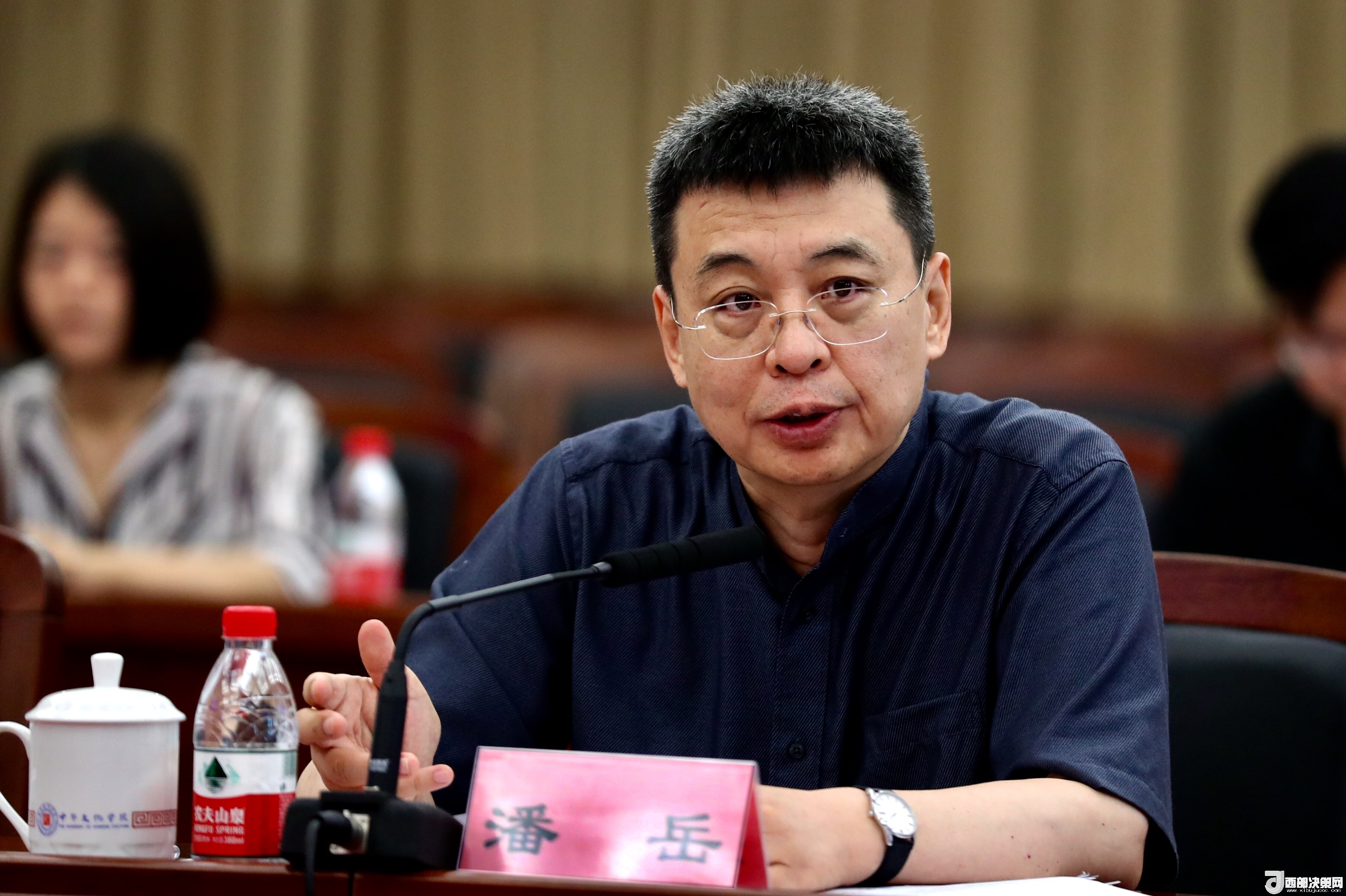 中央社院黨組書記、第一副院長(zhǎng)潘岳表示統(tǒng)戰(zhàn)智庫(kù)建設(shè)所依托的學(xué)院具有三大獨(dú)特優(yōu)勢(shì)。 經(jīng)濟(jì)日?qǐng)?bào)記者 蘇琳攝。
