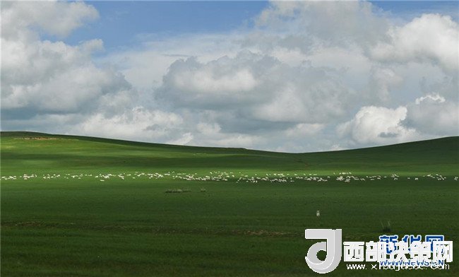 西烏珠穆沁旗的草原上,羊群在覓食(7月21日攝)。