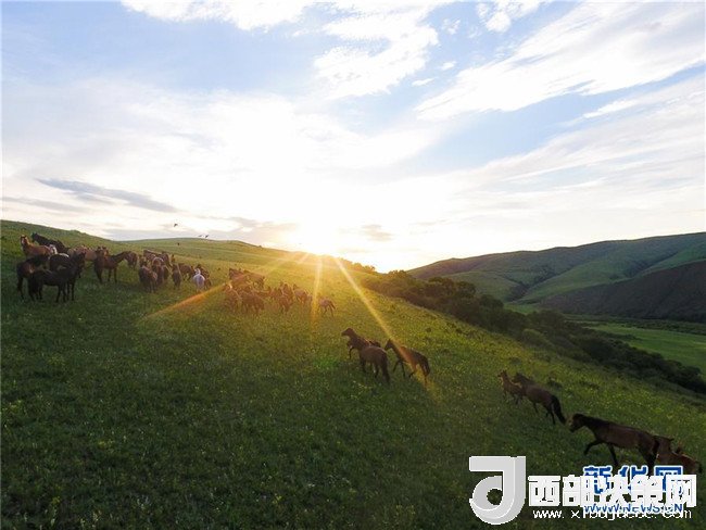 盛夏時(shí)節(jié),內(nèi)蒙古錫林郭勒草原一碧千里,遙接天際。藍(lán)天白云之下,牛羊悠閑自在,馬群奔馳其中,風(fēng)光旖旎。 新華社記者 劉磊 攝