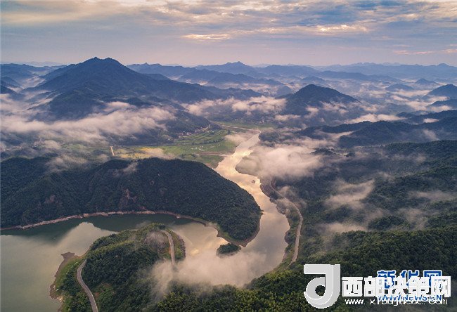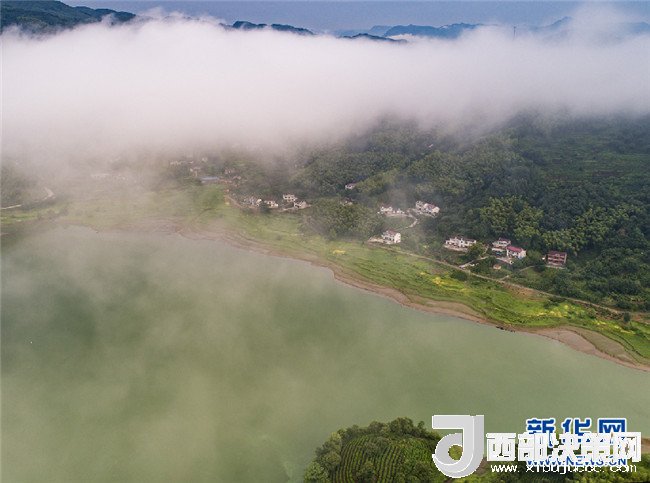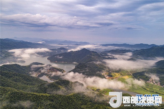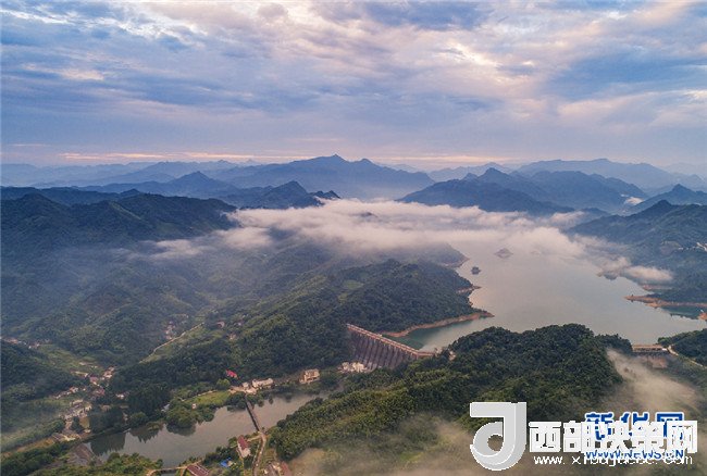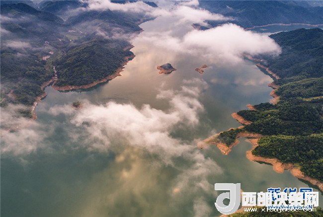 7月26日,霍山縣磨子潭鎮(zhèn)。磨子潭水庫上空白云朵朵,宛若仙境。