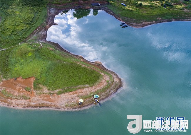 7月26日,霍山縣單龍寺鎮(zhèn)。二名釣魚愛好者在庫區(qū)水邊垂釣。