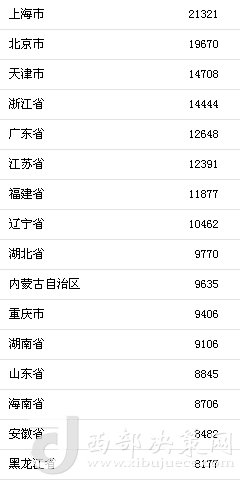 上半年31省區(qū)市人均消費支出。來自國家統(tǒng)計局