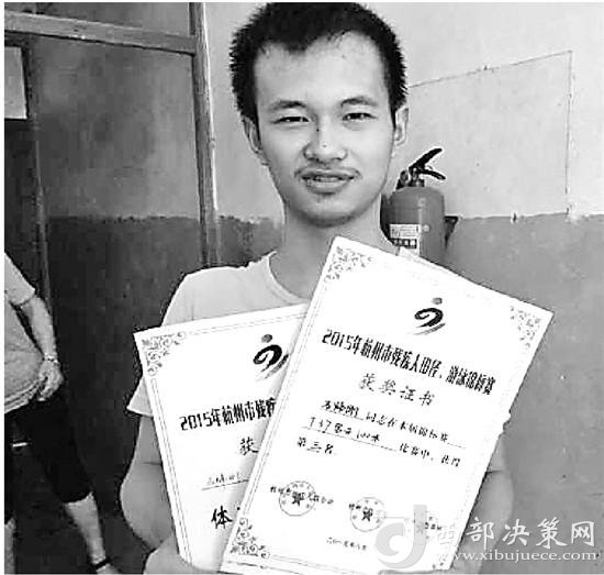 小學(xué)、初中成績(jī)名列前茅,考入重點(diǎn)高中,成績(jī)同樣優(yōu)秀。不僅如此,煒剛還參加了2012年杭州市青少年殘疾人田徑、游泳、射擊錦標(biāo)賽,2015年杭州市殘疾人田徑、游泳錦標(biāo)賽,努力奔跑的他獲得了一個(gè)又一個(gè)好成績(jī),捧回了一張又一張獎(jiǎng)狀。