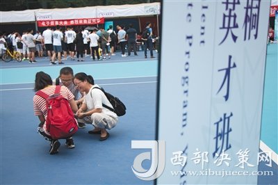 昨日,新生及其家長在丘成桐數(shù)學(xué)英才班報到處附近休息。