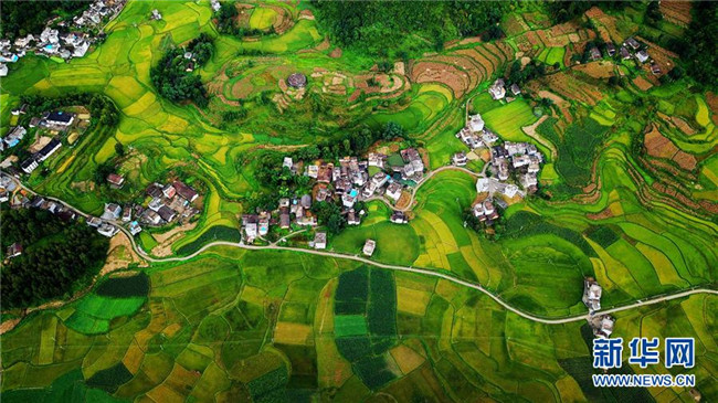 廣西隆林各族自治縣克長鄉(xiāng)海長村的秋稻即將成熟(9月1日無人機(jī)拍攝)。 新華社記者張愛林?jǐn)z