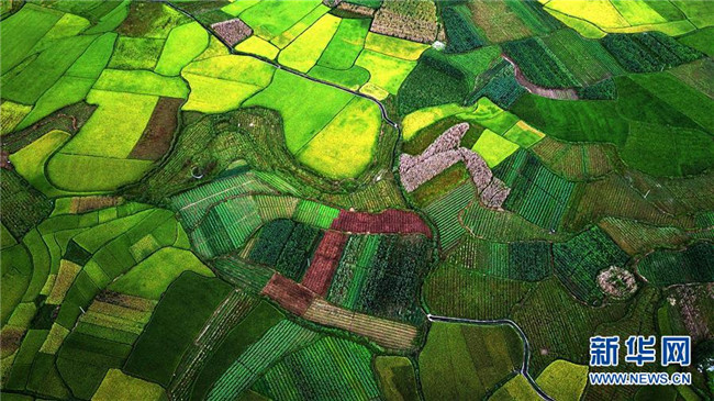 廣西隆林各族自治縣克長鄉(xiāng)田園景色(9月1日無人機(jī)拍攝)。 新華社記者張愛林?jǐn)z