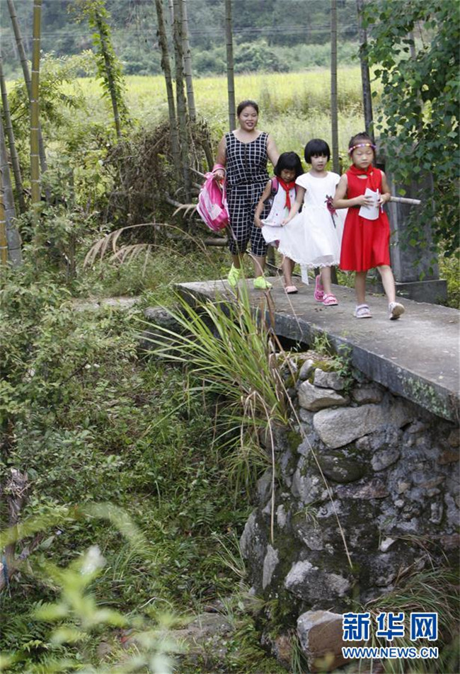9月4日,陳春英送幾名學(xué)生回家。 新華社記者段卓力 攝