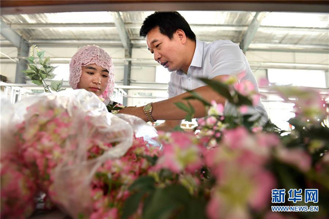 潘文賢(右)在寧夏固原市隆德縣隆德人造花工藝有限公司向員工介紹人造花制作技術(shù)(8月29日攝)。來(lái)自福建南安市的潘文賢2011年在隆德縣創(chuàng)辦隆德人造花工藝有限公司,成為隆德縣第一家集研發(fā)、生產(chǎn)和銷(xiāo)售于一體的勞動(dòng)密集型出口創(chuàng)匯企業(yè),產(chǎn)品遠(yuǎn)銷(xiāo)歐美及東南亞等國(guó)家和地區(qū)。截至2017年底,已成功打造隆德縣前莊村、紅崖社區(qū)等5個(gè)扶貧車(chē)間,幫助150人穩(wěn)定就業(yè)、218戶外加工戶靈活增收,帶動(dòng)300多個(gè)建檔立卡戶增收脫貧。 新華社記者郭緒雷攝
