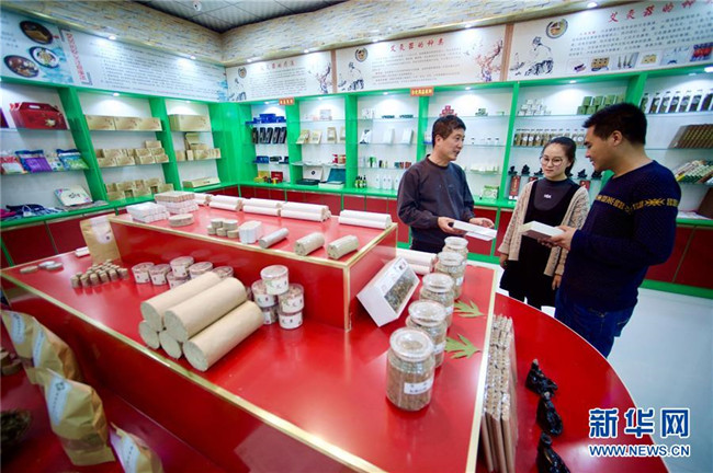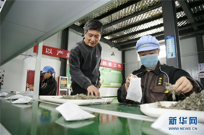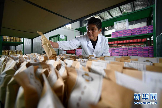 林玉清在寧夏固原市西吉縣寧夏澤艾堂生物科技有限公司查看艾草產(chǎn)品(8月30日攝)。來(lái)自福建莆田的林玉清2017年3月在西吉縣成立寧夏澤艾堂生物科技有限公司,依托西吉縣優(yōu)質(zhì)的艾草種植條件,采用“公司+合作社+農(nóng)戶”的訂單農(nóng)業(yè)合作模式,與吉強(qiáng)、新?tīng)I(yíng)等鄉(xiāng)鎮(zhèn)種植專(zhuān)業(yè)合作社合作建成艾草種植基地11個(gè)、推廣種植艾草6000畝,為當(dāng)?shù)厝罕娒撠氈赂讳伨托侣纷?。新華社記者郭緒雷攝