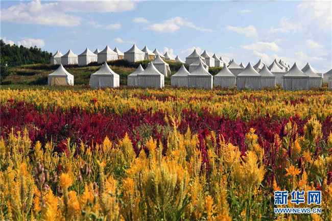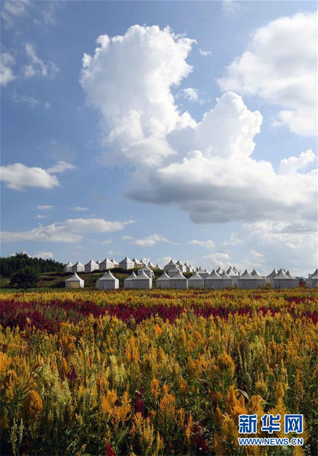 云南羅平七彩花田中的帳篷酒店(9月5日攝)。 新華社記者楊宗友攝