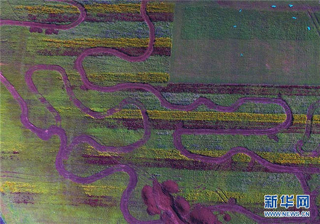 云南羅平的七彩花田(9月5日無(wú)人機(jī)拍攝)。 新華社記者楊宗友攝